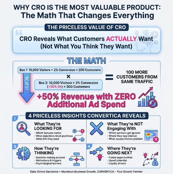 A membership platform was spending $85K/month on ads to drive traffic. They had good traffic volume (32,000 visitors/month) but conversion was stuck at 1.8%. Rather than increasing ad spend, we focused exclusively on conversion optimization. Through systematic A/B testing, we discovered that users were confused by the pricing structure and unsure about the value they'd receive. We restructured the page, added social proof at key decision points, and simplified the signup flow. Conversion rate increased to 4.2%—a 133% improvement. That translated to 792 additional members per month from the same traffic, generating an extra $1.1M in annual recurring revenue with no increase in ad spend. The investment in CRO? Just $4,500/month. ROI: 24X.